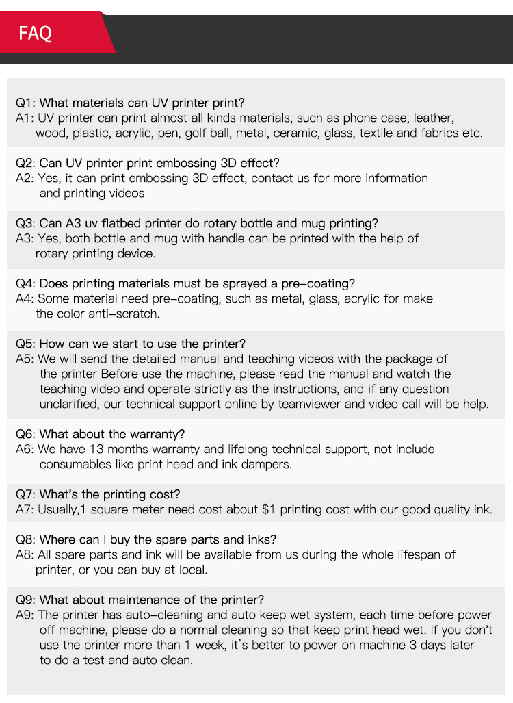 · Max printing Size: 40*30cm Height Adjustment Automatic with Sensor.